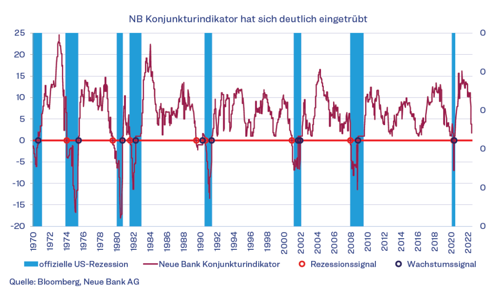Auch unser Rezessionsindikator könnte bei anhaltendem Trend bald ein