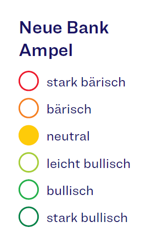Die Indizes auf globale Aktien weisen für die erste Jahreshälfte einen Verlust von ca. 20% aus (in USD gemessen). Dies ist durchaus beachtlich. Dennoch sind die Bewertungen historisch gesehen immer noch überdurchschnittlich. Es ist deshalb fraglich, ob eine mögliche Rezession schon eingepreist wäre. Und natürlich gibt es auch Schreckensszenarien für die kommenden Monate, welche sich – aufgrund der Abhängigkeiten Europas von russischem Gas – projizieren lassen. Auf der Anlageseite gilt es, einen kühlen Kopf zu bewahren, strukturiert und nicht emotional vorzugehen. Wir setzen deshalb auf die Neue Bank Ampel, welche zurzeit auf Gelb (neutral) steht.