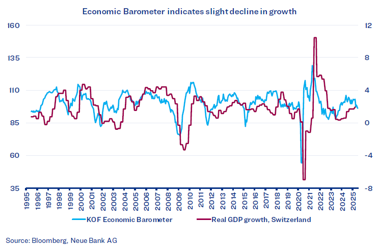 At present, there is certainly no sign of runaway inflation. The recent decline in the KOF Economic Barometer is partly due to the fact that growth in the first quarter was driven by orders and deliveries to the United States being brought forward in anticipation of the announced tariffs. This growth subsided in the second quarter. Trade policy and potential tariff increases will shape the economic outlook in the near future.