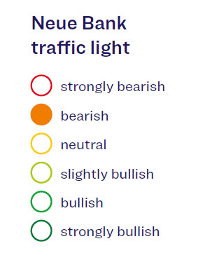 Nevertheless, our economic indicators, which are reflected in the Neue Bank traffic light, also entered recession territory at the end of August. Since these indicators are leading, they react even before a potential downturn. This increases the probability of an economic contraction