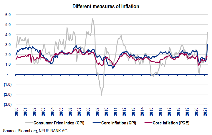 Inflation has recently accelerated again in the US. This is why there is speculation – especially in the financial press – that expansionary monetary policy may be coming to an end. But the indices often cited in this regard, pointing to allegedly excessive inflation, are not particularly relevant. The Consumer Price Index (CPI) does in fact suggest higher prices, with an inflation rate of more than 4% per year.