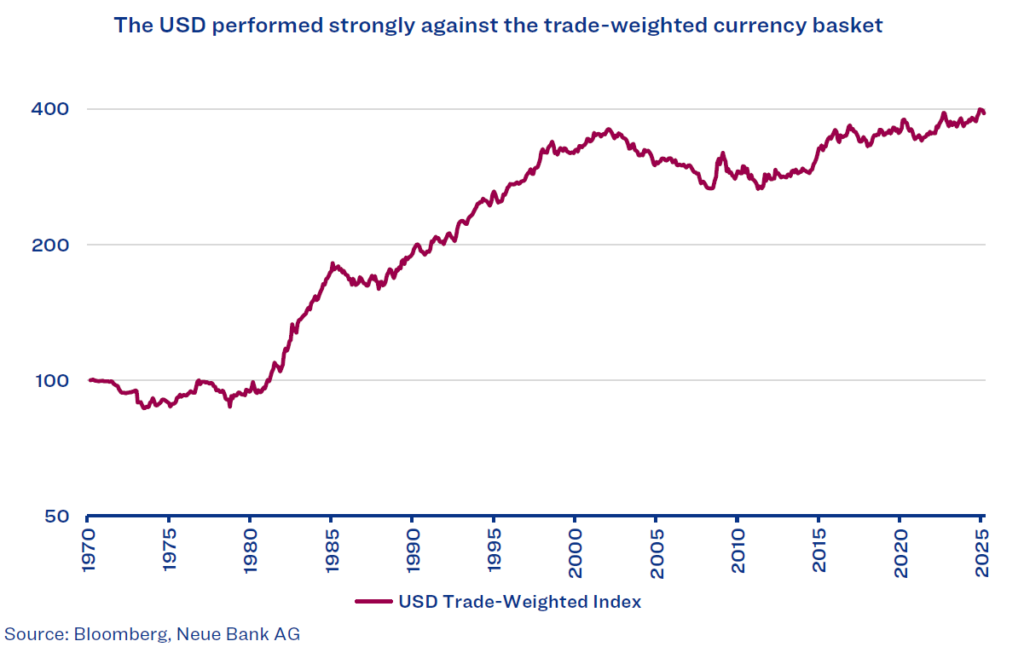 If you like, however, the USD’s long track record is so robust that it is likely to remain the dominant reserve currency even under another four years of Trump’s presidency. No other currency is emerging as a serious competitor. This does not rule out temporary weaknesses in the USD and currency hedging on our part. At the moment, however, there are no plans to actively hedge the greenback in CHF and EUR reference currency portfolios.
