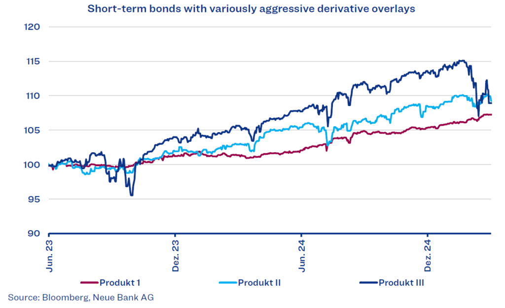 The recent increase in volatility on the equity has led to higher premiums for derivative strategies. These strategies can be combined with short-term bonds in a fund. This creates a product that has a low duration risk on the one hand and opens up an additional source of returns thanks to the option premiums.