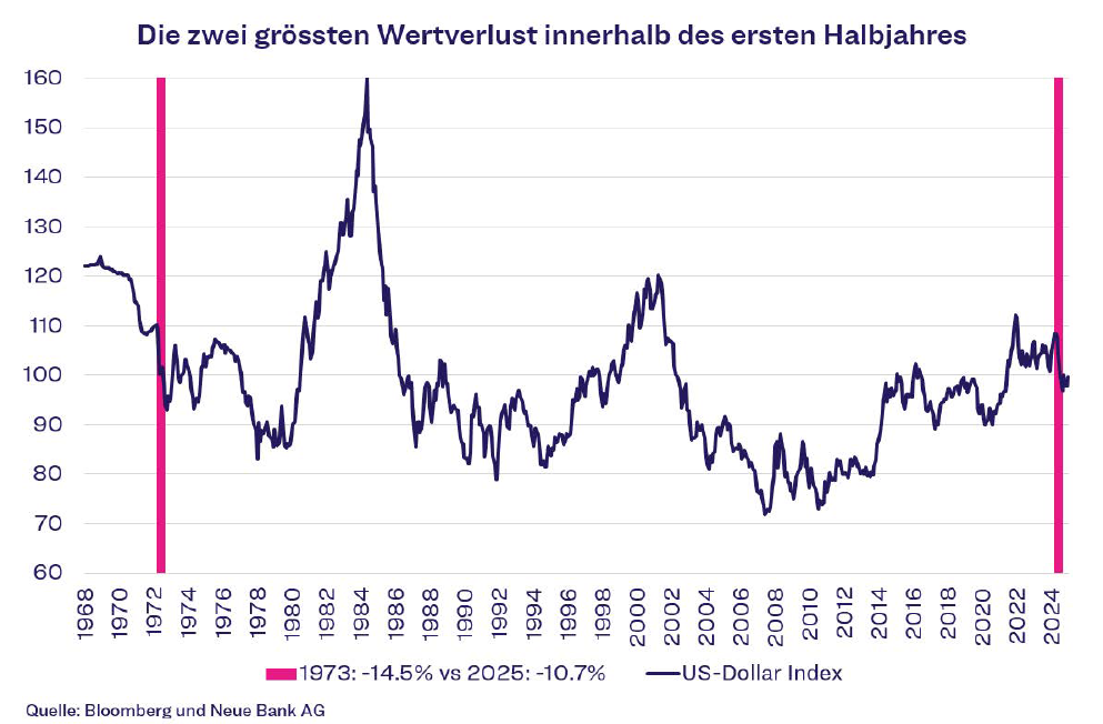 Seit Anfang Jahr bis Ende Juni hat der Dollar-Index, welcher die Entwicklung von insgesamt sechs Währungen zum US-Dollar abbildet,